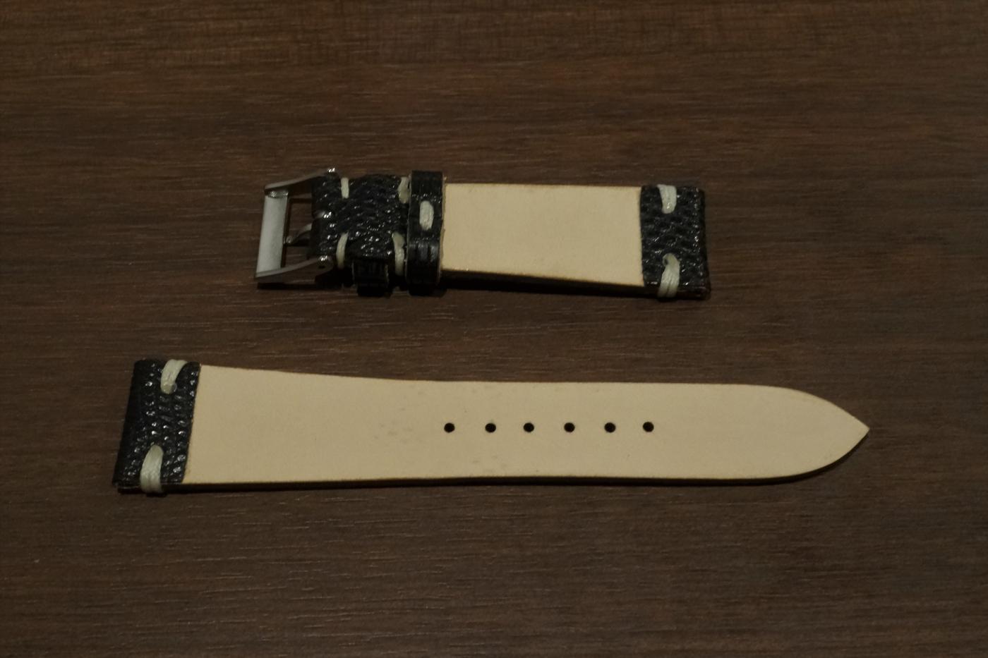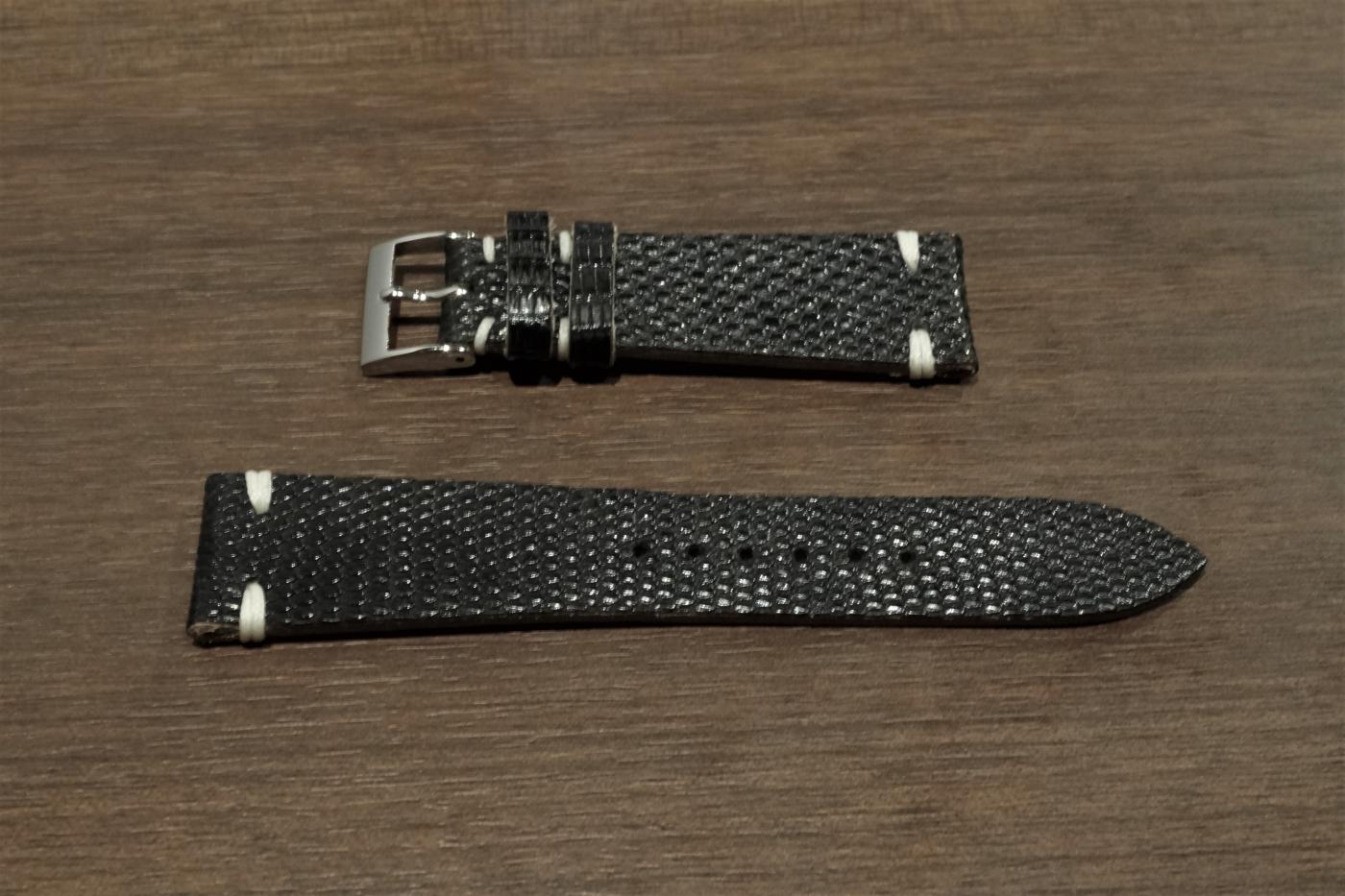 素材:トカゲ本革 サイズ:20mm(尾錠幅16mm) 長さ:12時側約65mm、6時側約115mm 厚さ:約2mm 通常のストラップより計15mm短いタイプです。 ストラップの裏は写真よりベージュっぽい色合いになります。 ご注文番号R-シB20