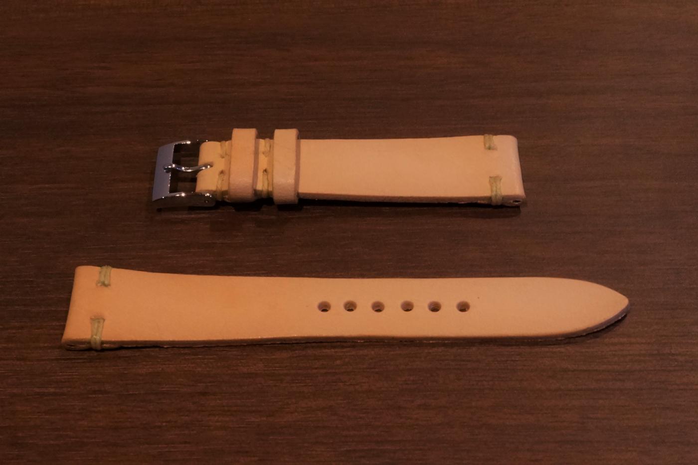 素材:カーフ サイズ:18mm(尾錠幅16mm) 長さ:12時側約75mm、6時側約116mm 厚さ:2.0mm マッシーズオリジナルのカーフストラップです。 店頭価格では税込み4980円ですが、こちらのサイトでの価格は、3980円+ネコポス送料300円となります。 ご注文番号MS-BE18