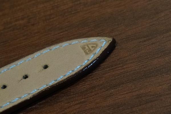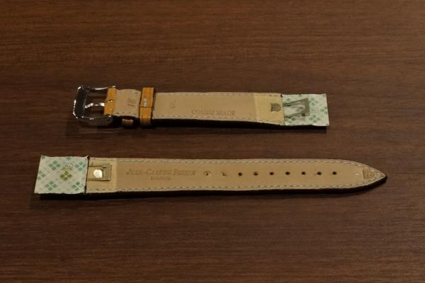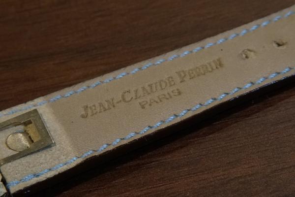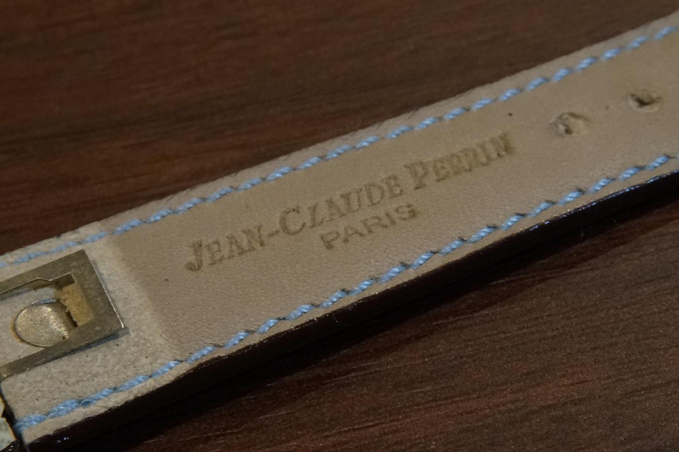 フランスのジャン・クロード ペランストラップです。 サイズ:18mm(尾錠幅16mm) 長さ:12時側約72mm、6時側約114mm 厚さ:約2.5mm こちらのストラップは、バネ棒にあたる部分がラグに溶接されているタイプです。パリス管(はめ殺し)用になります。 JCP-O03