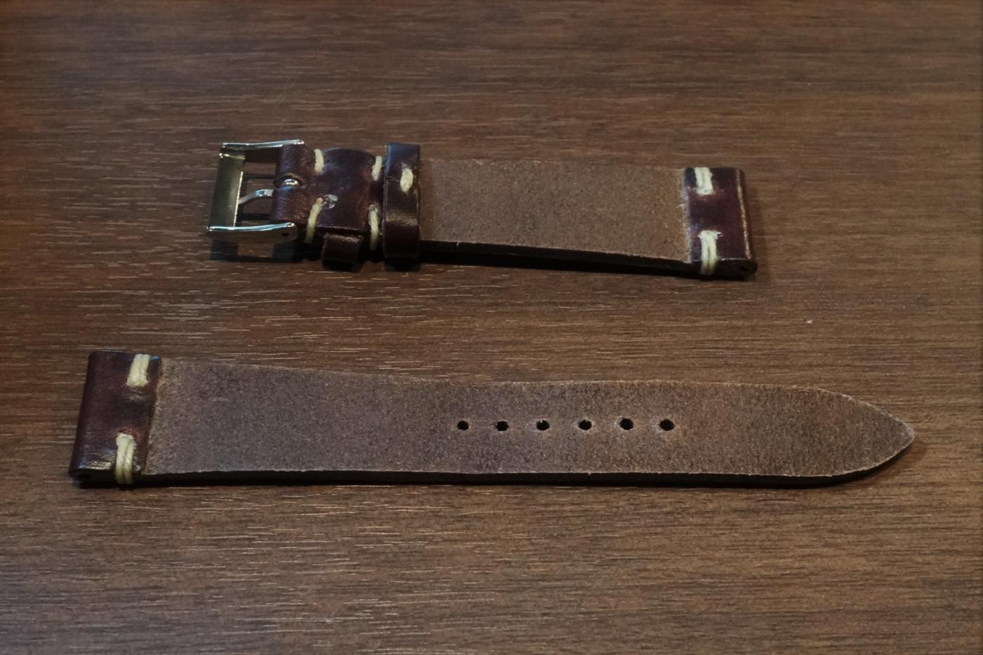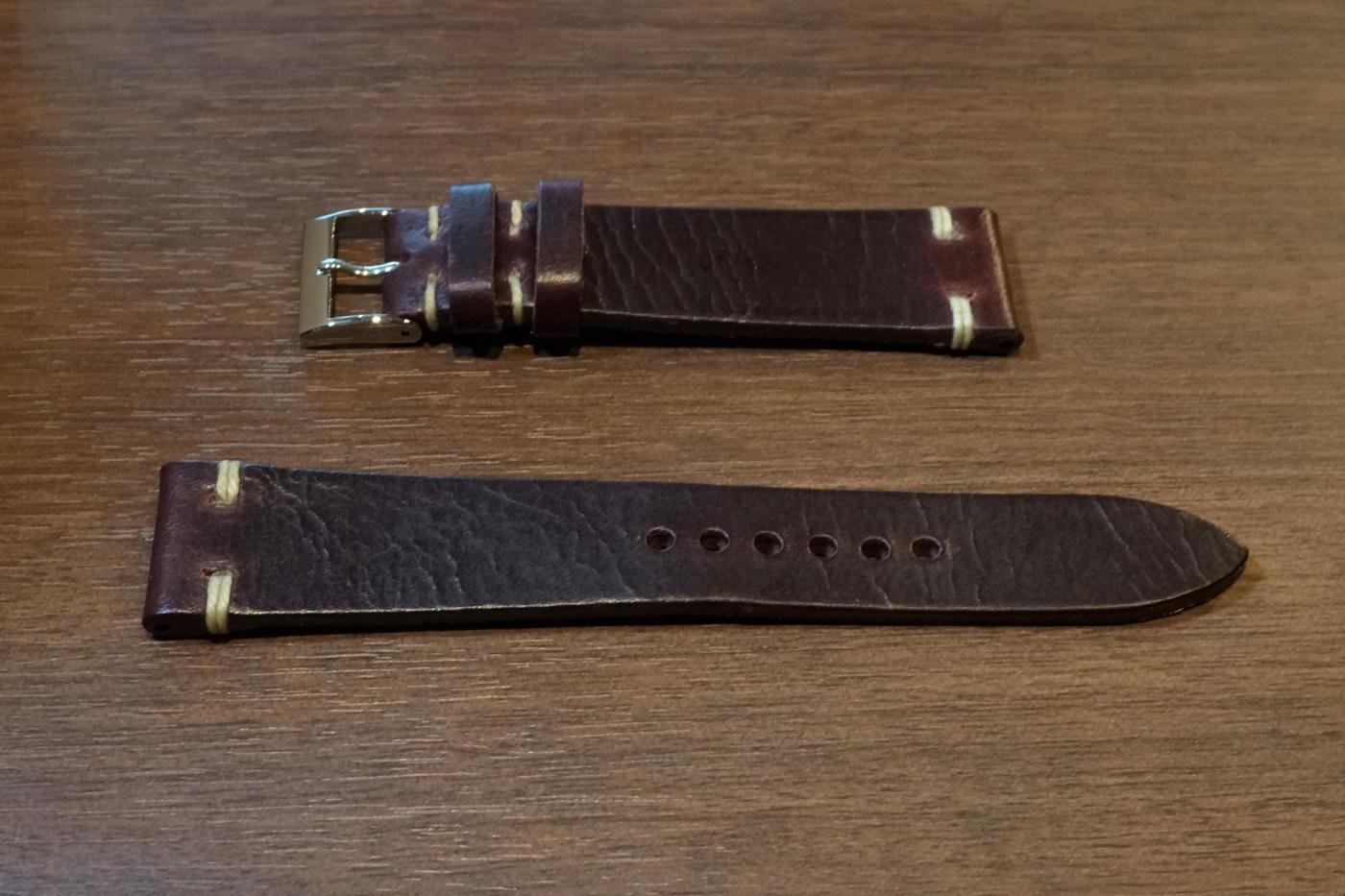 素材:カーフ サイズ:19mm(尾錠幅16mm) 長さ:12時側約75mm、6時側約116mm 厚さ:2.0mm マッシーズオリジナルのカーフストラップです。 店頭価格では税込み4980円ですが、こちらのサイトでの価格は、3980円+ネコポス送料300円となります。