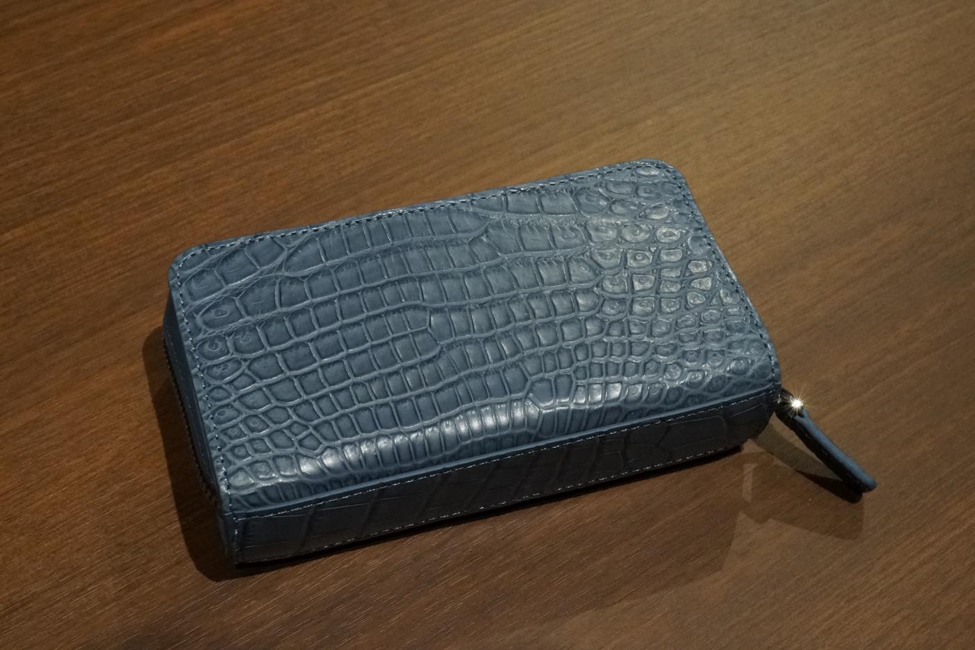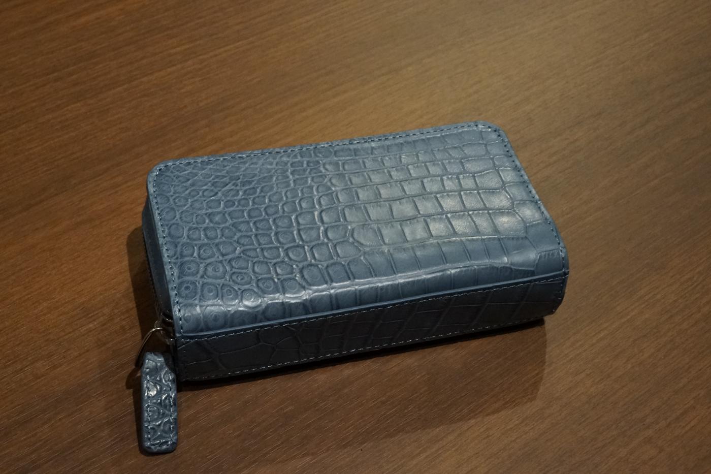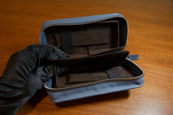 本革クロコダイル 時計ケース2本用 ブルー