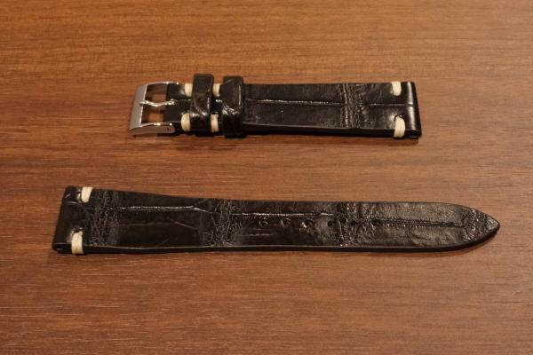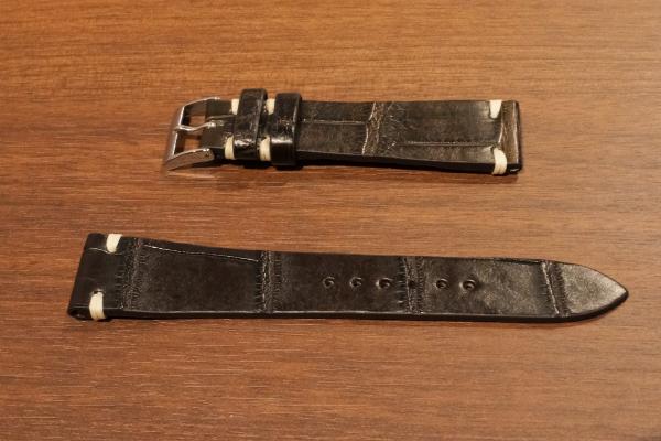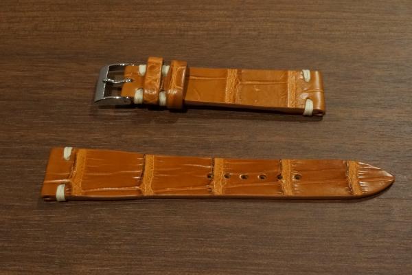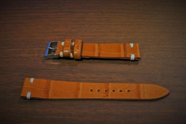 素材:本革クロコダイル(艶無) サイズ:20mm(尾錠幅16mm) 長さ:12時側約75mm、6時側約120mm 厚さ:約2mm ご注文番号MC-D20